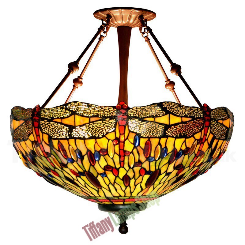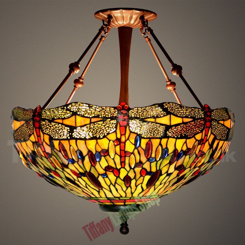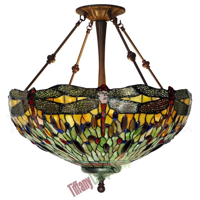 Handcrafted Vintage 20 Inch Dragonfly Tiffany Pendant Light
