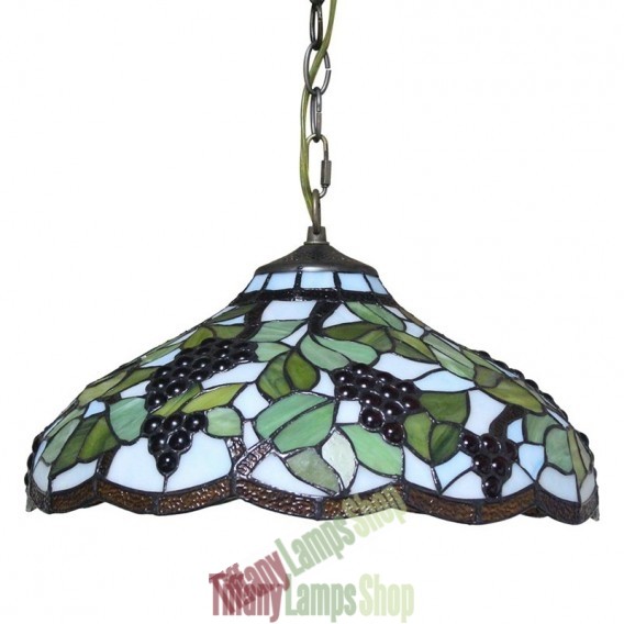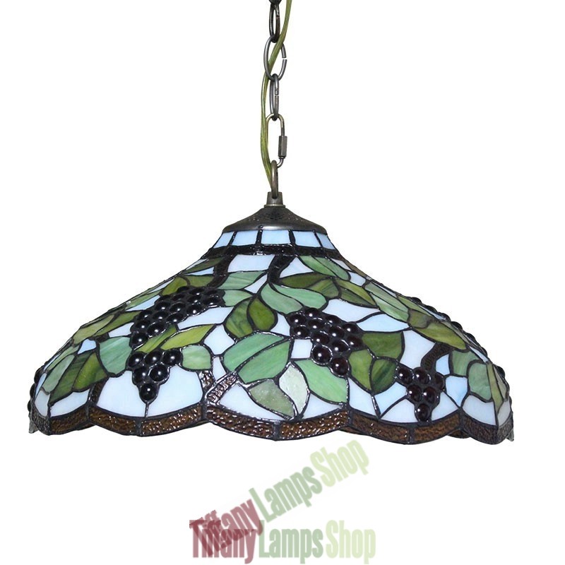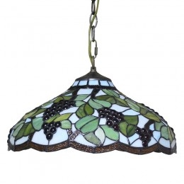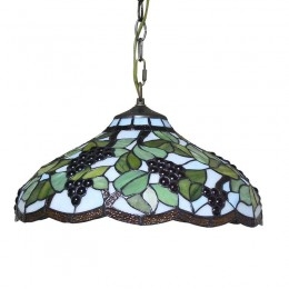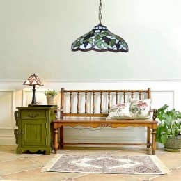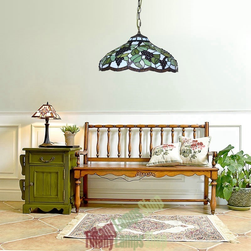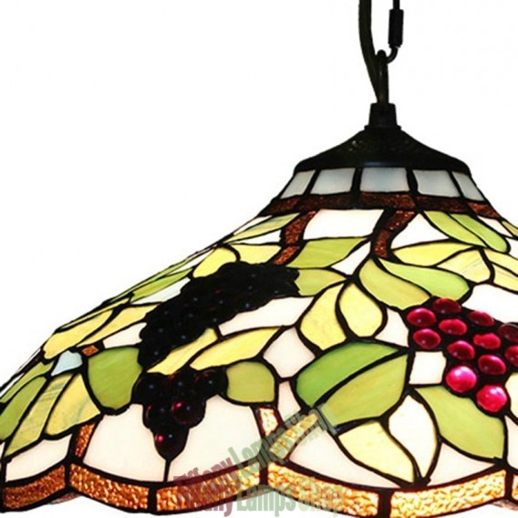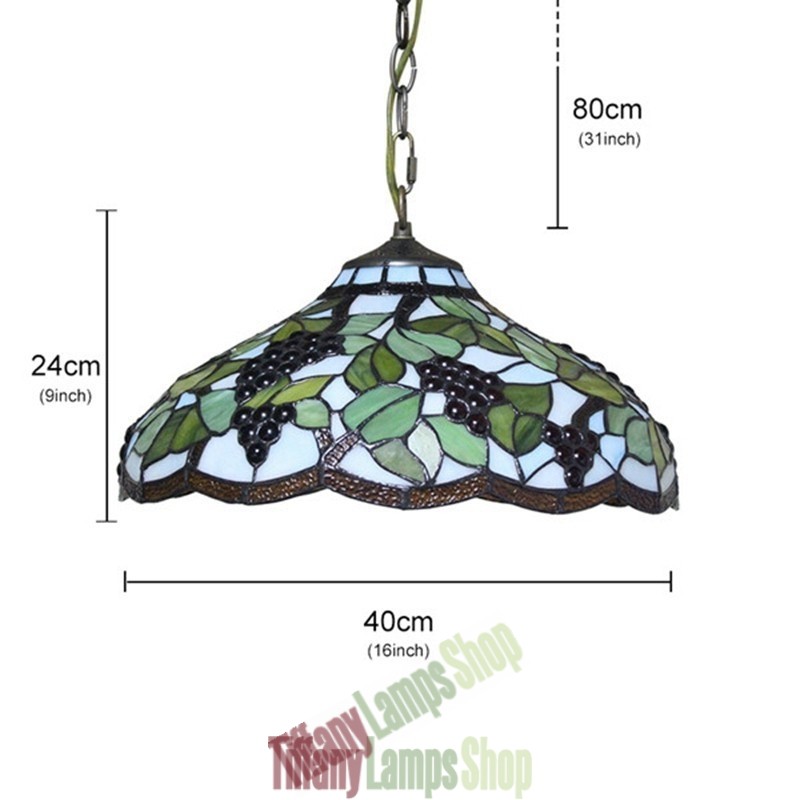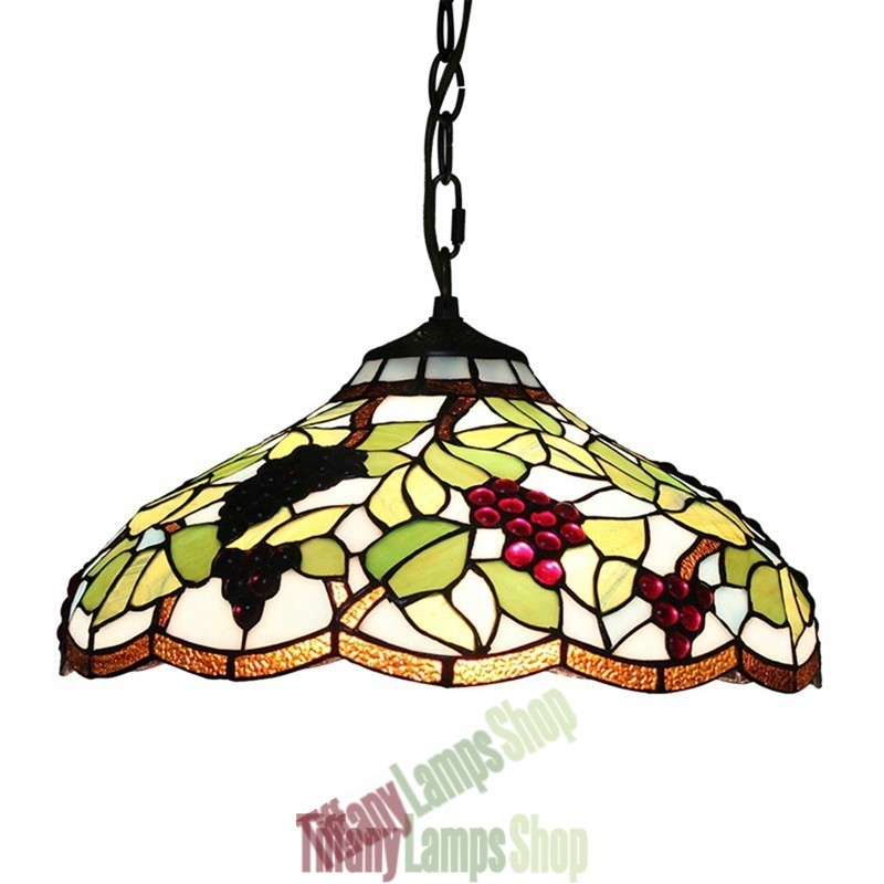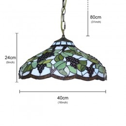 Handcrafted Vintage 16 Inch Pastoral Retro Tiffany Pendant Light with Multicolor Grapes Pattern Glass Shade